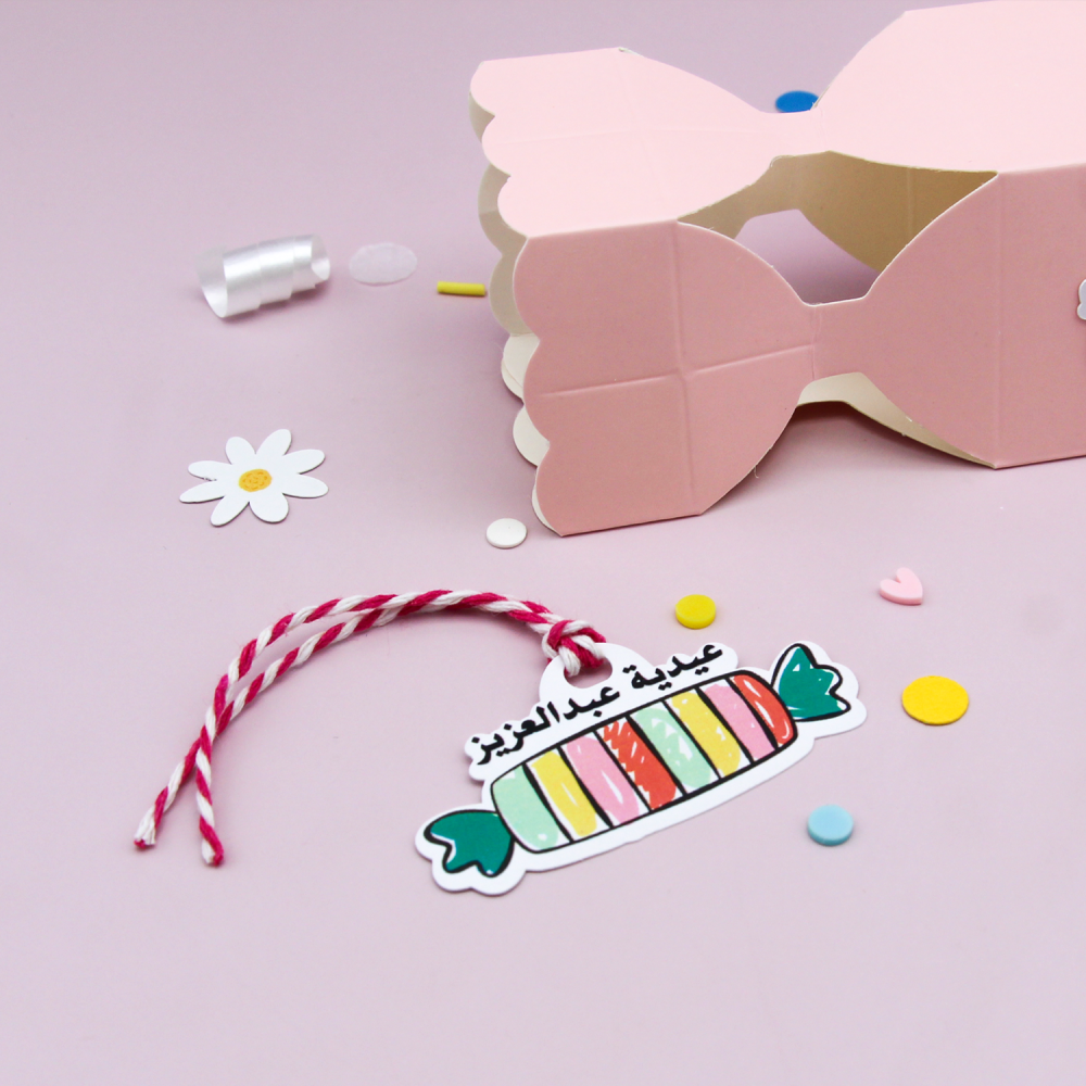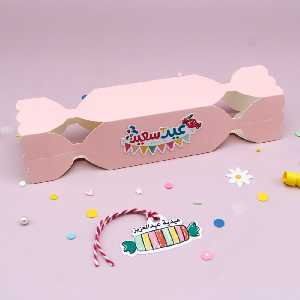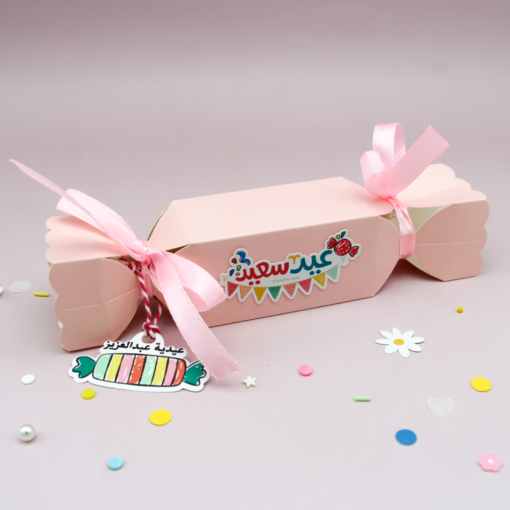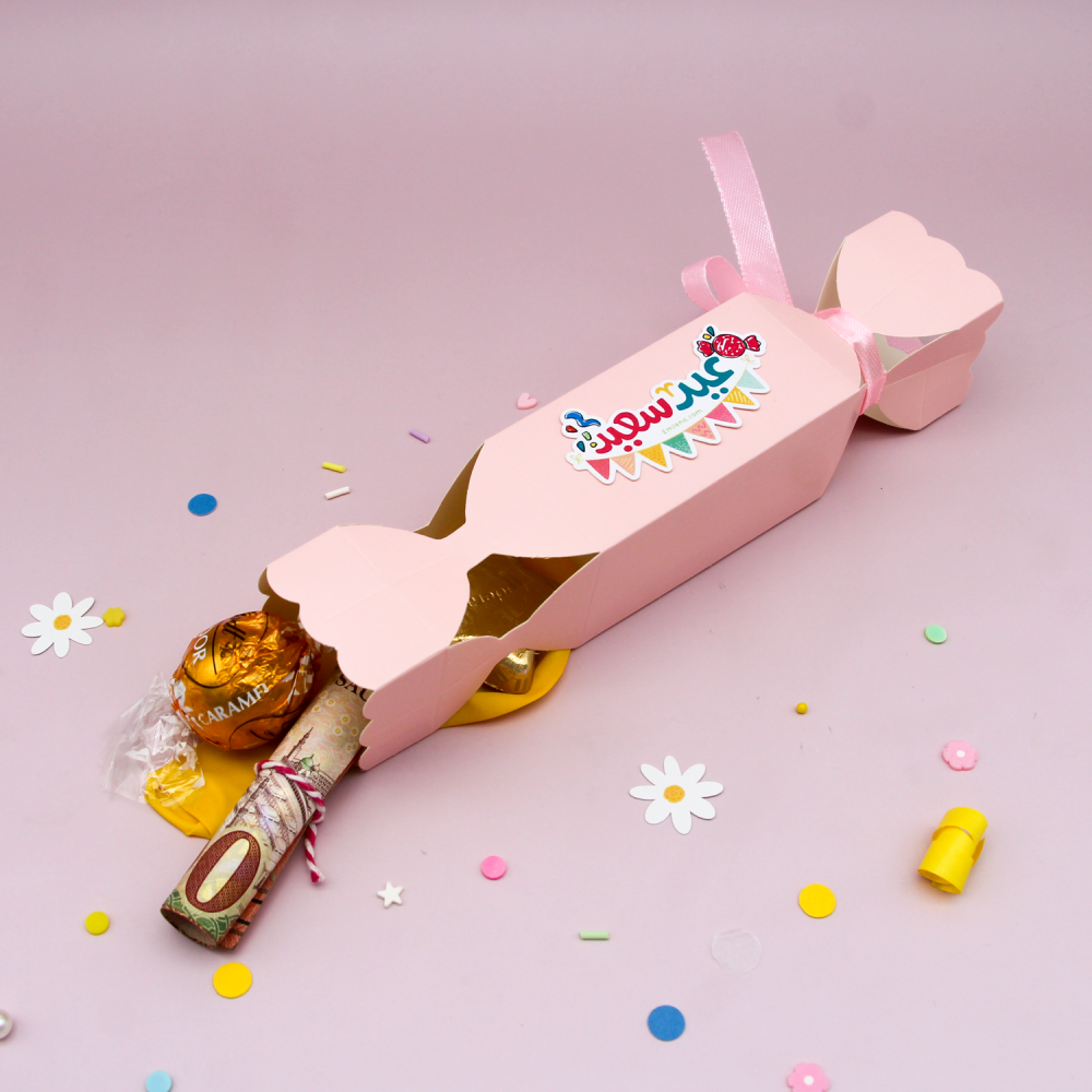 علبة توزيعات -حلويات العيد (وردي)